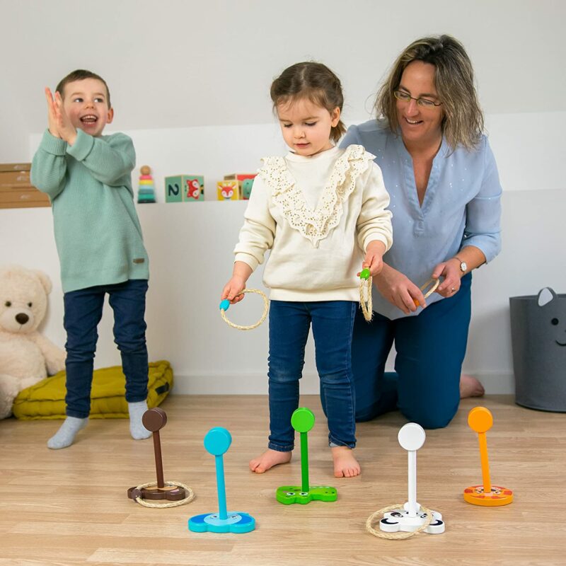 يقوم الطفل برمي الحلقات لإدخالها في الأعمدة 👌و في كل مرة يحسب عدد النقاط التي جمعها 🤗