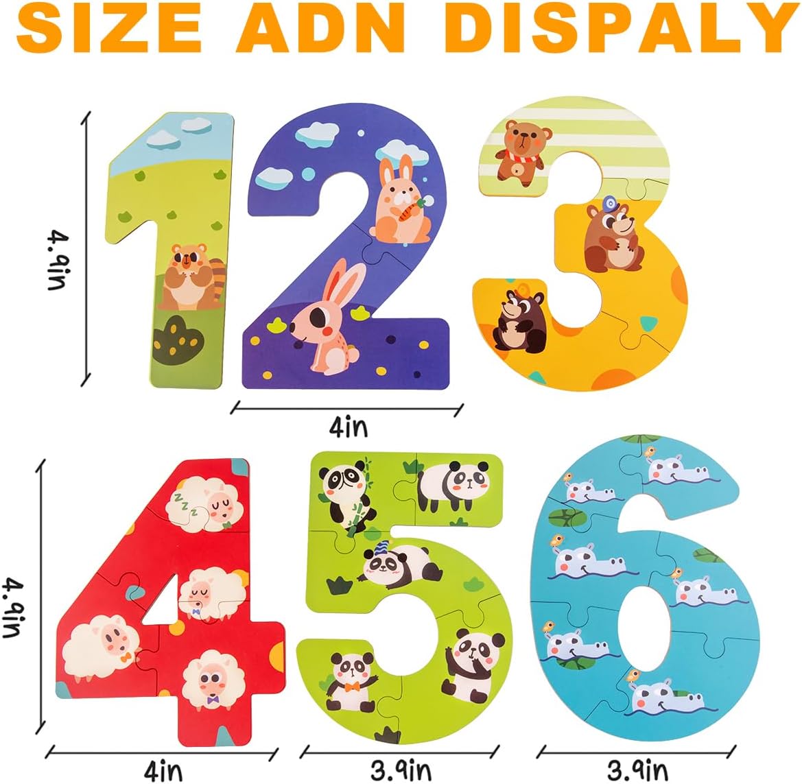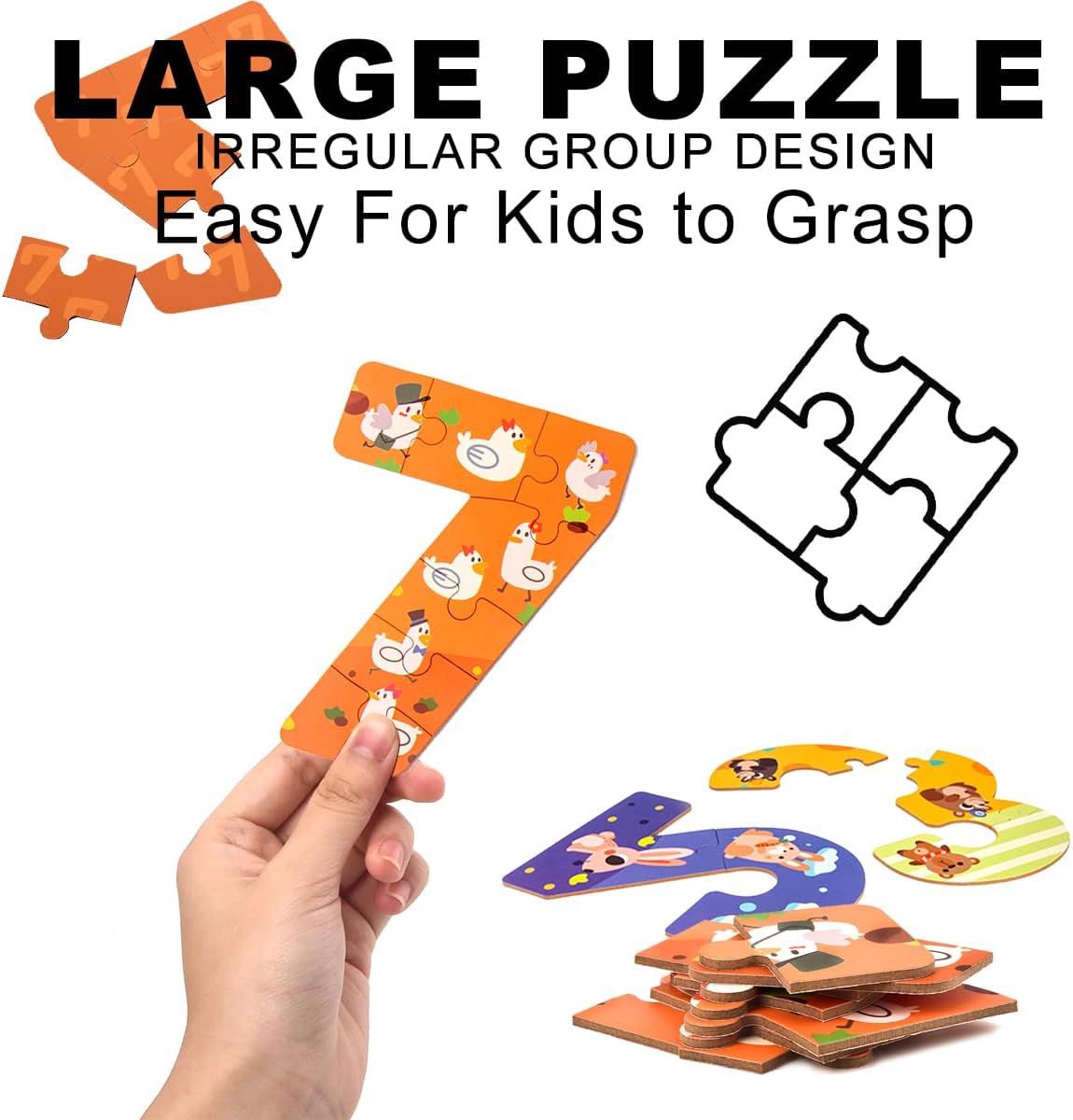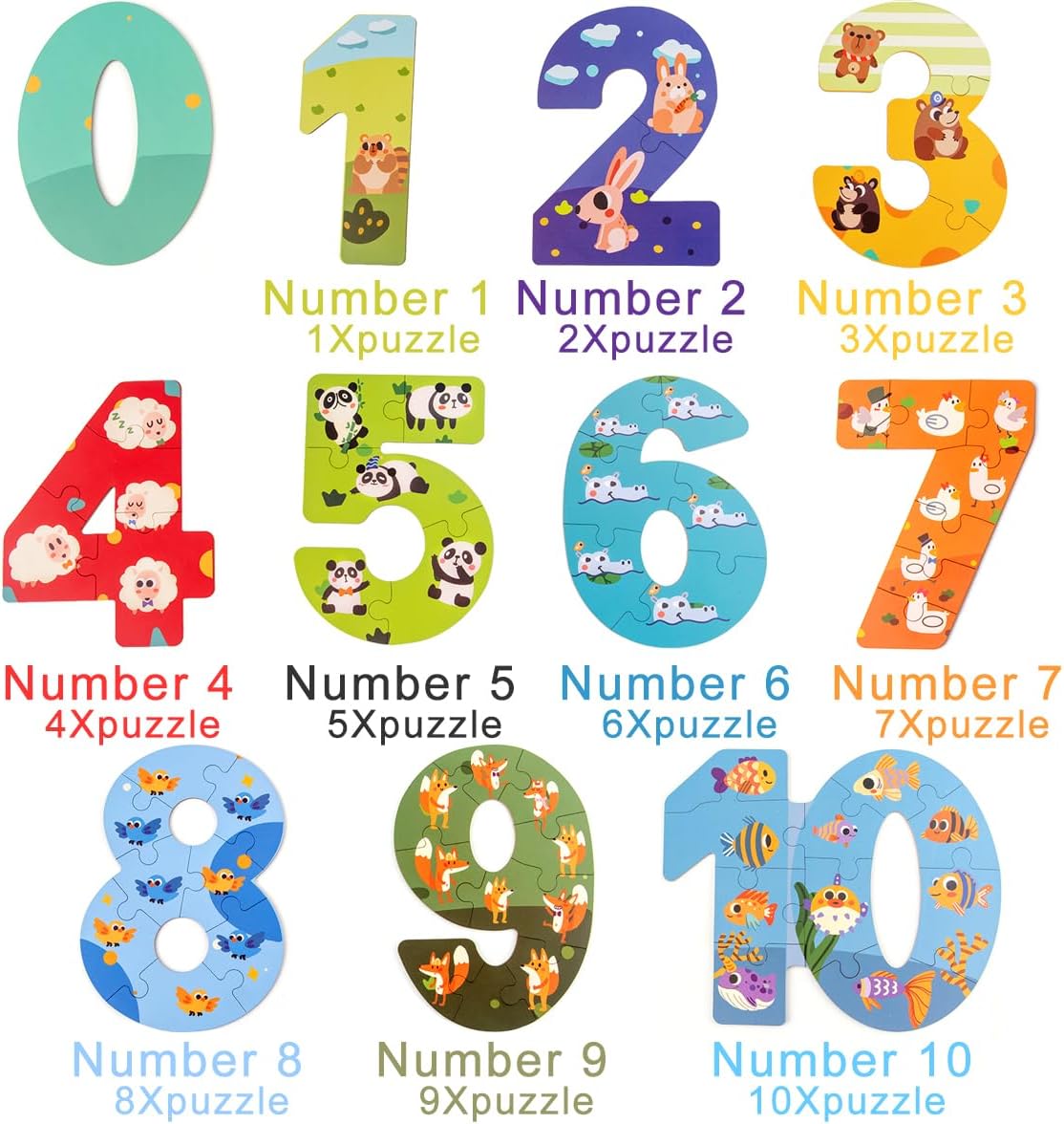 – كل رقم مقسم إلى قطع بازل للتركيب 🧩