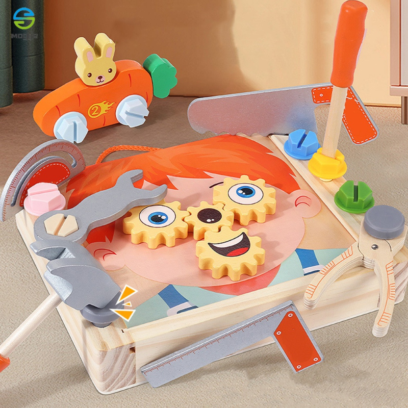 - حقيبة خشبية بوجه طفل و أماكن براغي.